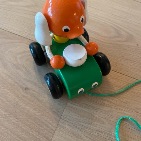 En kjørende elefant som jumper opp og ned mens den kjører, leke som kan draes etter i en snor