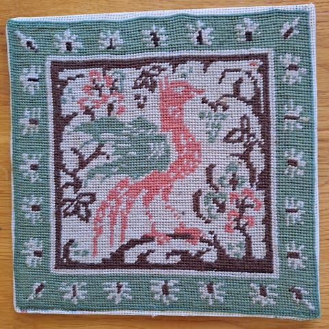 Vi skal flytte og får ikke med oss alt. Har brodert dette sjøl og håper noen har plass til det på en vegg. Fine farger! orntlig ramme fra rammeverksted. 62x77 cm