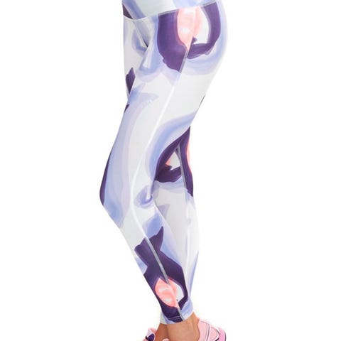 Selger et par flotte Stormberg-leggings med et unikt og livlig mønster i lilla, blått og rosa. Perfekt til trening eller fritid!