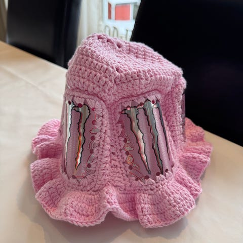 Crochet bucket hat carebears kjøpt fra corchetkuma på depop (håndlaget). Kjøpt for ca 420kr + frakt og toll. Ubrukt.