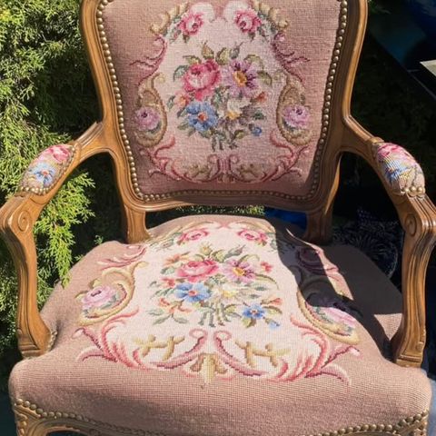 Selger en flott rococo salong i fransk barokk stil. Møblene er håndlagde med nydelige tre utskjæringer. Trekkene er også håndbroderte og i veldig god stand. Har totalt 6 stoler, en sofa og et bord.