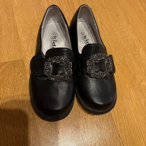 Nesten helt nye bunadsko, bare brukt noen timer. Kjøpt på Coop Obs. Liten skade på tuppen av ene skoa, se bilde..