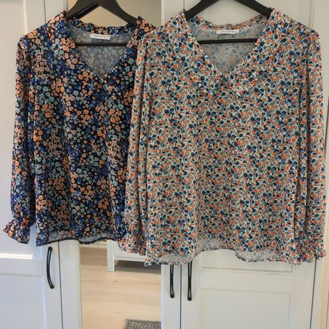 Fine bluser selges samlet 500.- Nypris sikkert nærmere 2000.-, så her er det mye for pengene. Alle er lite og pent brukt, 2 av de er ubrukt med lappene på. Floyd mønstret str. S (nypris 599.-), Floyd hvit med prikker, helt ny med lapp str. S (nypris 599.-), Marineblå fra Vila str. S helt ny med lapp (nypris 399.-), kremhvit fra JDY str. 36 (usikker på nypris). Kan sendes mot at kjøper betaler frakt.