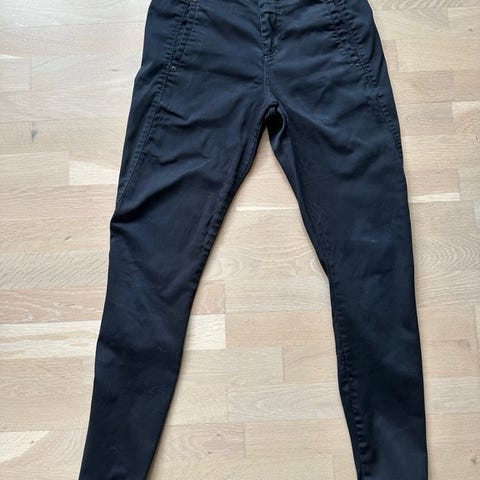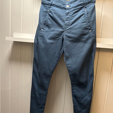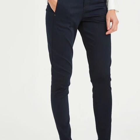 Den perfekte basebuksen Jolie i mørkblå i deilig kvalitet. Smale ben, høy på livet, skrå lommer og tversover-lommer bak. Et must i basic-garderoben. Noe god i størrelsen, foretrekker å gå ned en størrelse. 52% bomull