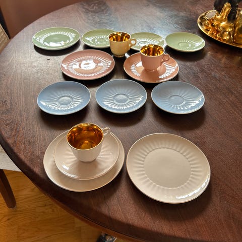 To vakre askebeger i mintgrønn og rosa. Ser nye ut. Selges samlet.