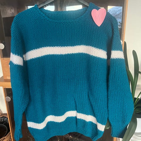 Kul genser med hvit krage. «Falsk» skjorte under. Selve genseren er i en strikket kvalitet.