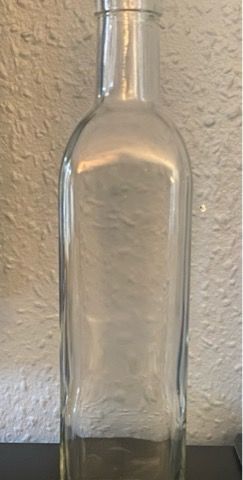 Selger en glassflaske med kork som kun er brukt én gang. Den er i klart glass og har en tettsittende kork som forhindrer lekkasje. Den passer for eksempel til konservering av syltetøy og syltede produkter, servere drikke eller holde kjeksene sprø. Flasken er ca. 23 cm høy og 7,5 cm i diameter nederst. Selges ettersom den ikke blir brukt.