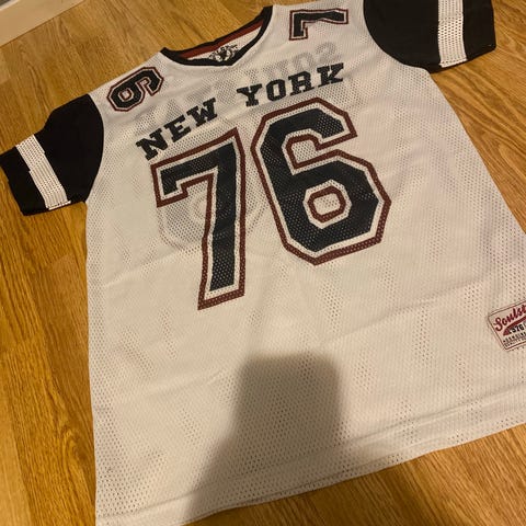 Jeg selger en sportsskjorte jeg ikke bruker. Den er laget av et materiale som strekker seg og tørker raskt.