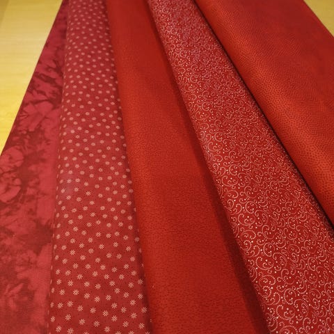 Grønne stoffer selges. Quiltekvalitet, ren bomull. Bredde ca 110-114 cm. Kr. 150/m.