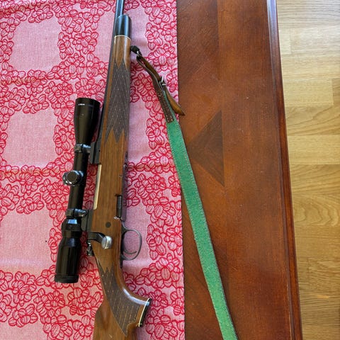 God og lettskutt BSA rifle. Den er nokre år, men funkar greit for den som vil ha ei rimeleg og grei jaktrifle. Billig kikkert, men gjer nytten. Oppdatert gummikule på hevarm og nye lokk til kikkertsikte.