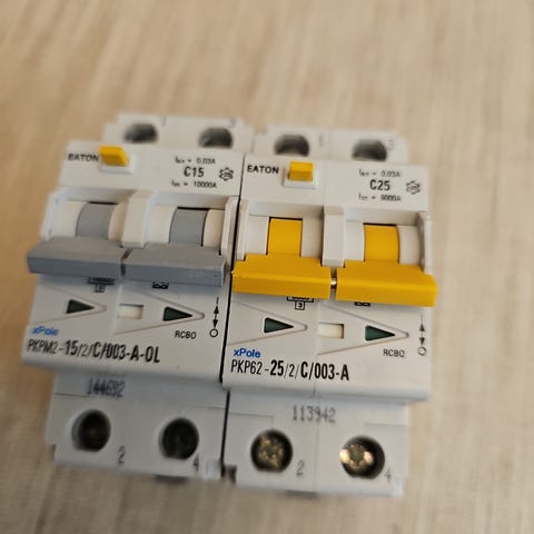 3 stk Moeller xpole PKPM3 16/3/C , C16A 350kr/stk (2stk 100mA og 1stk 30mA jfa)