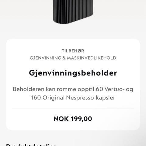 Vanntank til Nespresso Kaffe/Kapsel maskiner