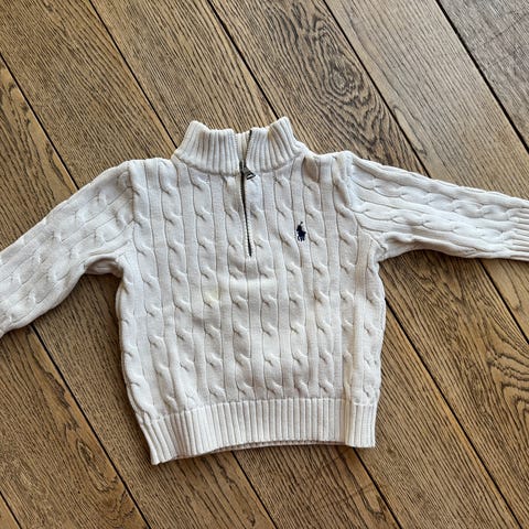 En fin og klassisk genser/strikkejakker fra Polo Ralph Lauren til barn. Det står 2 år/92 men passer sikkert fint til barn som har str. 86
