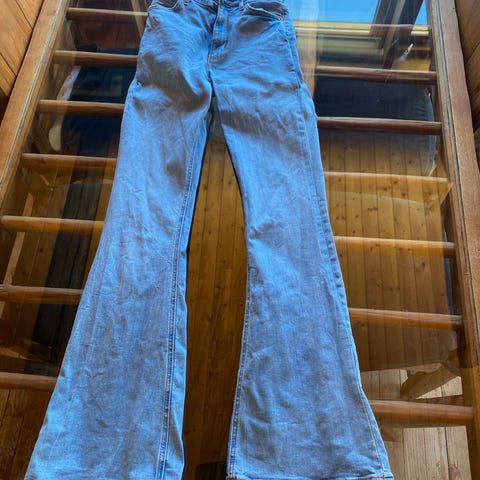 Selges da de ikke blir brukt, ettersom de har blitt litt små til meg. Høy på livet og stramme øverst med fin sleng nede. Jeg har klippet den av nederst slik at buksen har en rå kant.