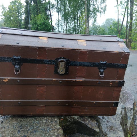 Selger En gammel Amerika koffert arvet av min far. Hel og fin, om enn noe støvet på bildene. Nøkkel medfølger. Vi har brukt den til spill på hytta.
