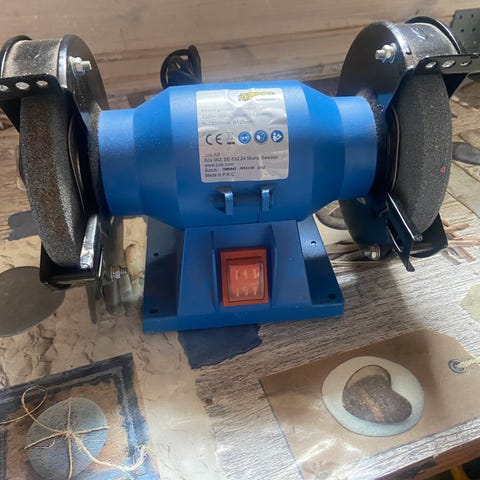Elektrisk kjedesagsliper med 85 watt effekt og 7/8 tommer slipestein. Kan monteres på benk, vegg eller skrustikke. Inkluderer 4 stk 7/8 tommer slipesteiner. Passer for sliping av kjedesagkjeder. Den er ubrukt, men esken er åpnet.