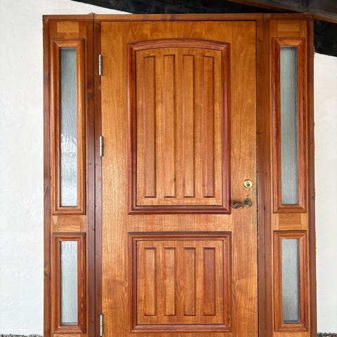 Døra er hel og fin, men vi gikk for vanlig furu-optikk til slutt.
