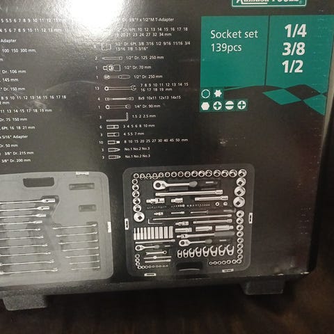 Dette mekanikersettet fra Kamada Tools inneholder 2 pipenøkkelsett (1/4" og 1/2"), kombinasjonsnøkler, leddnøkler og skruverktøy. Til sammen løser de de fleste mekaniske problemer, store som små. Under dekselet av lexanplast er det 12 rom av ulike størrelser til ekstra verktøy eller oppbevaring av muttere, bolter og skruer. To piper mangler, legger ved to av annet merke. Pent brukt.