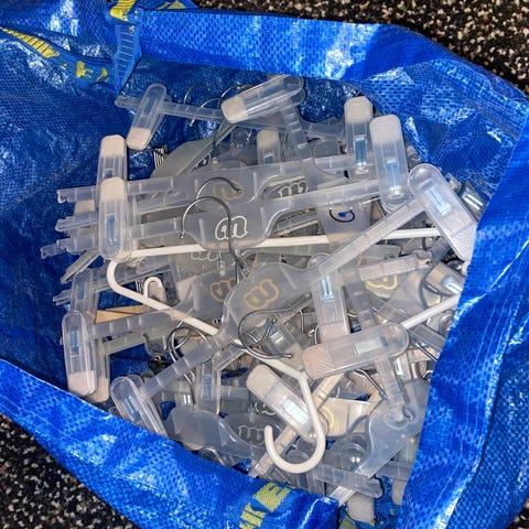 3 stk SAMMENLEGGBARE solide, men enkele og svært praktiske sekkeholdere som er perfekt i hagen (etter hageselskap?), garasjen eller kjelleren. Settes enkelt opp ved behov og tar liten plass når den ikke er i bruk. Pris pr stk