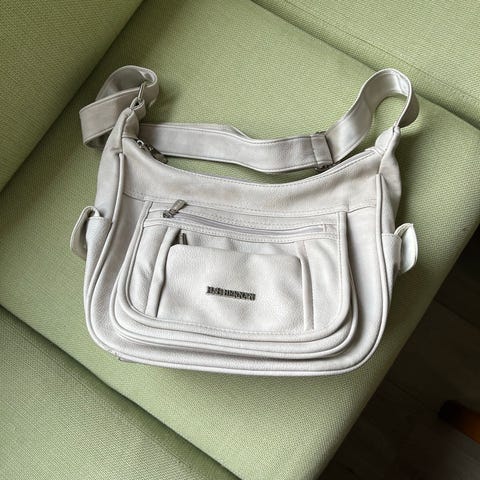 Ukjent alder . Med 3 lommer . Mange flekker . Selges som den er