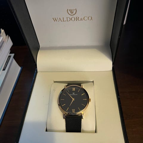 Tøff klokke, svart tallskive med visere som noter🎶🎵🎼 Stanless steel. Klokken må ha nytt batteri. Ellers fremstår den som ny, ingen synlige skader. Elastisk metallrem.