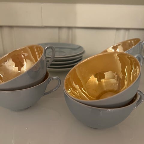 RETRO - 6 deler - Camille 2 meget pene tekopper med skål og asjett