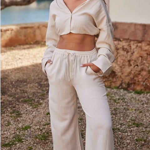 Ubrukt hvit, vid bukse i linblanding fra Nelly. Størrelse Small. Kun prøvd på hjemme.
