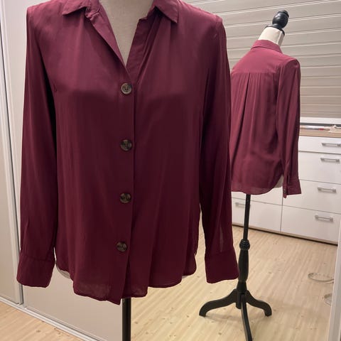 3 pent brukte skjorter i fargene Lindegrønn, gammelrosa og sjokoladebrun. Selges som pakke Kr 100