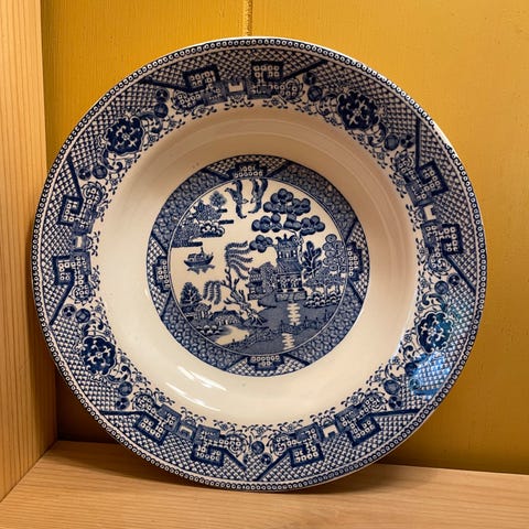 En brun flekk bak på den ene se bilde. Bilde på den ene er mer uklar en den andre fra produksjonen, ellers hele og fine med normale bruksmerker. H ca 3 cm D 24 cm
