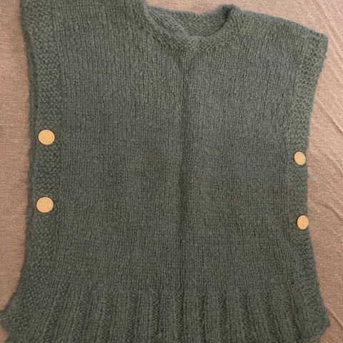 Strikket i et tynt, svært lett garn. Pryder med kanter av pelsgarn