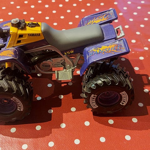 • Gatefeiebil – mangler gummibelegg på bakhjulene (usikker på om det egentlig skal være der)