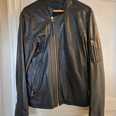 Skinnjakke i lammeskinn. Størrelse L (stor).
