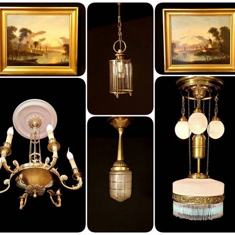 Selger to like antikk taklamper samlet.Den ene helt ok, den andre har en liten bulk. Se bilder.