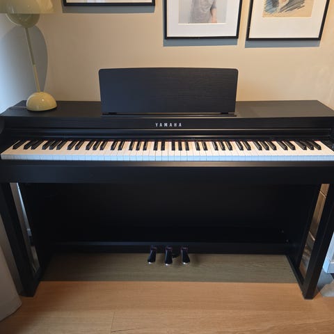 Selger mitt elektroniske piano fra Yamaha.