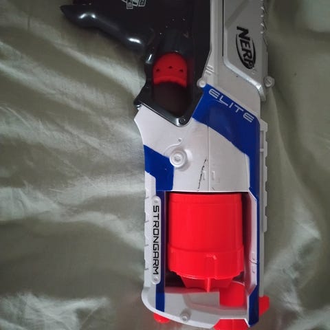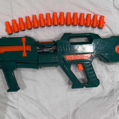 Lekepistol for barn selges billig. I god stand og ikke synlig brukt. Pris kan diskuteres. Selges fordi den ikke brukes lenger og barn har vokst opp.
