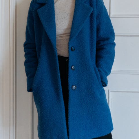 ..............................................................................................................................................................................................................Nøkkelord:kåpe, coat, Holzweiler, blå jakke, Fozia coat,jakke, kåpe,ulljakke, ull,Gave