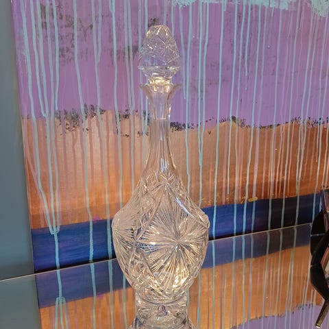 Elegant vintage karaffel/vase i krystall med hals i 925 sølv. Tung og flott.