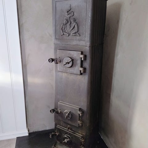 Ovnen er tatt ned og klar for ny opmuring.