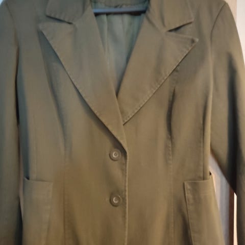 Nett blazer, innsvingt kort medell, uten bruksmerker. Bomull, polyester og elastan