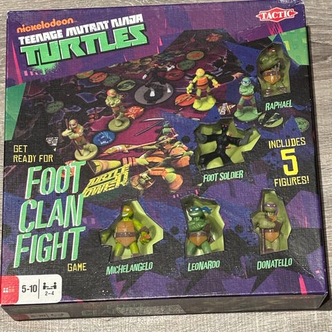 Nickelodeon Teenage Mutant Ninja Turtles Get ready for Foot Clan Fight fra 2013, komplett i fin og ren stand. Noe slitasjemerker og teipmerke på esken, se bilde.