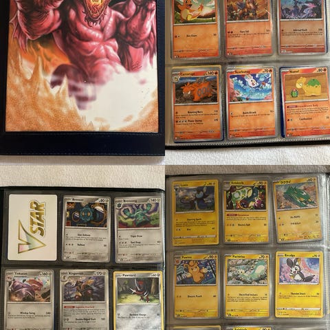 Pokemon kort i perm, nesten 100 stykk (96 tror jeg)