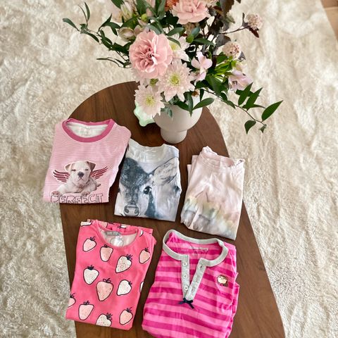 Selger en pent brukt klespakke til jente i str 110/116 😊 Den gule toppen har en flekk som vist på bilde, men ikke noe man legger veldig merke til. Selges samlet.