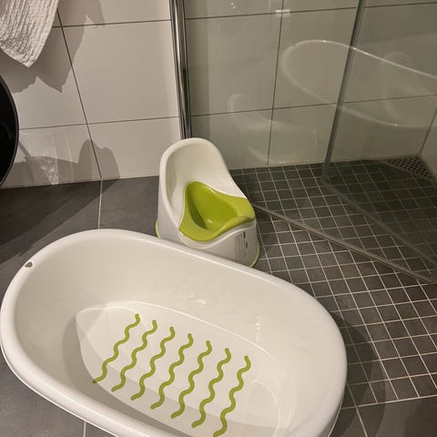 Oppblåsbar baby reiseseng i god tilstand. Sirka 120cm lang, passer til barn opp til 100cm.