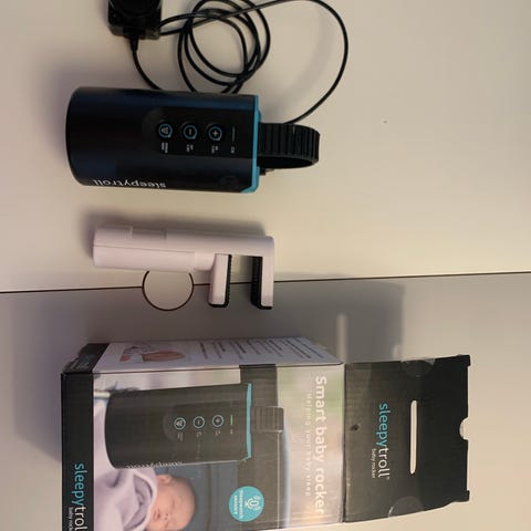 Selger brukt Sleepytroll - barnevognvugger. Festes enkelt til barnevognen og vugger barnet automatisk når det våkner eller gråter. Lades via USB og har flere innstillinger.