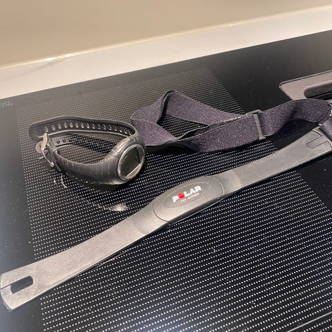 Suunto T1 - aldri brukt. Som ny, bortsett fra at beltet har en sprekk pga. at det var rullet sammen under lagring. Pulsbeltet fungerer uansett.
