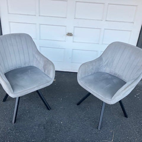Svært gode å sitte på, polstret sete og rygg. Noe bruksslitasje på metallet