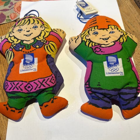 OL Maskoter fra olympiske vinterleker på Lillehammer 1994 ( i tøy )