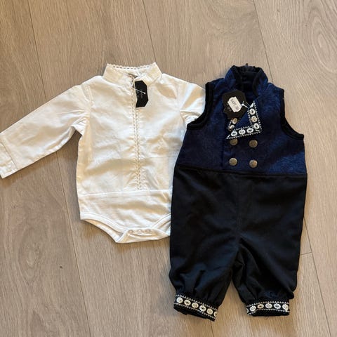 Festdrakt til gutt størrelse 80 fra Småtroll. Pent brukt kun 1 gang. Ekstra knapper følger med 🧸🇳🇴