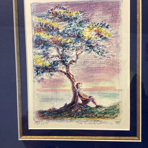 Flott tresnitt (?) av Jens Mathisen fra 1992. Nr. 66 av 295. Påkostet innramming med dobbel passepartout . Størrelse 37x33cm.