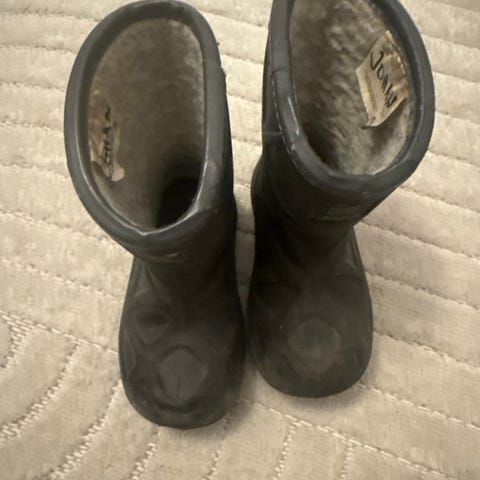 Marineblå gummistøvler med mange bruk igjen.
